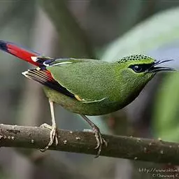 火尾绿鹛是莺科、绿鹛属小型鸟类,体长11-14厘米。上体绿色,头顶至枕具黑色鳞状斑,眼先和眼后黑色,…