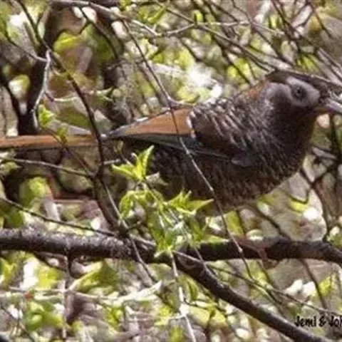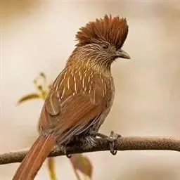 条纹噪鹛是画眉科、噪鹛属中型鸟类,体长28-32厘米。头具短的羽冠,上体栗褐色,飞羽外翻蓝灰色。…