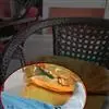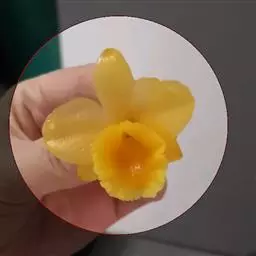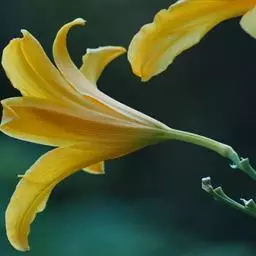 花被片黄色,副冠橘黄色,边缘波皱。