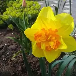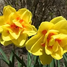 观赏价值极高的重瓣洋水仙,花瓣多为金黄色,内夹少量由花蕊突变而来的深红色花瓣。