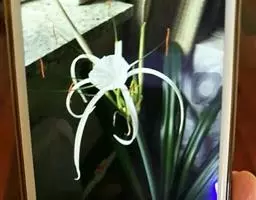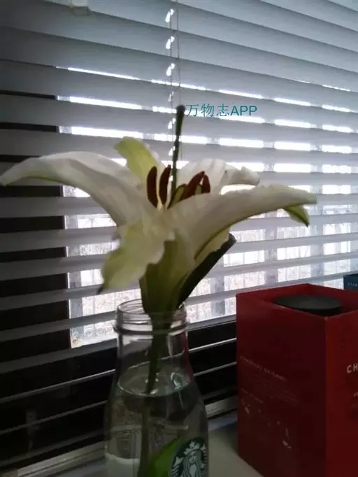 花常一亭一朵,直径5~6cm,花被片白色,向后卷曲,6片副冠呈酒杯状,白色,基部黄色。