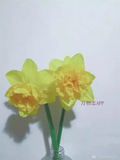 与长筒水仙相似,花被片和副冠均为黄色,花被片和副冠黄色,边缘波皱。