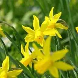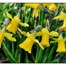 鳞茎较小,叶狭线形,表面有凹沟,鲜绿色。花茎与叶等长。顶生花2~6朵,鲜黄色,副花冠也为鲜黄色,边缘波状。花期3月下旬~4月中旬,单朵花开放7~10天,芳香。耐寒,鳞茎