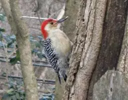 红腹啄木鸟成年雄鸟头项有红帽,翅膀和上体是黑白相间的斑纹状羽毛,腹部有一片红羽毛。头亦大,但颈较长,…
