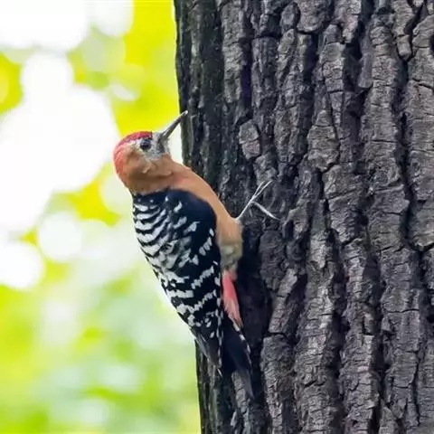 棕腹啄木鸟为啄木鸟科,啄木鸟属是中等体型的鸟类,体长约20厘米。头顶部具红色斑带。脚强健,有趾4个,…