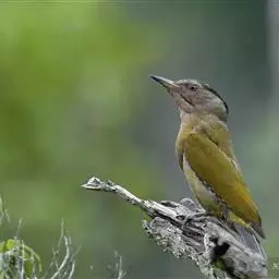 灰头啄木鸟(学名:Picus canus),中小型鸟类,体长26-33厘米。嘴黑色,雄鸟额基灰色,头顶朱红色,雌鸟头顶黑色,眼先和颚纹黑色,后顶和枕灰色。背灰绿色至橄榄绿色,飞羽黑色,具白色横斑,下体暗橄榄绿色至灰绿色。鼻孔被粗的羽毛所掩盖。嘴峰稍弯;鼻脊(残留或清晰的)距离嘴峰较近,而距离嘴基缝合线较远。脚具4趾,外前趾较外后趾长。尾为翼长的2/3稍短,强凸尾,最外侧尾羽较尾下覆羽为短。细分则两性异形。主要栖息于低山阔叶林和混交林,也出现于次生林和林缘地带,很少到原始针叶林中。繁殖期4-6月。分布于欧亚大陆,东到萨哈林岛和乌苏里,南到喜马拉雅山地区、中南半岛、马来西亚和印度尼西亚。