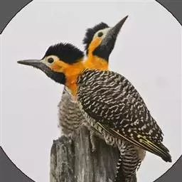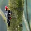 绒啄木鸟,北美洲最小的啄木鸟,白腹黑背和黑项,黑翼上有白色斑点。头部有黑白相间的条纹,尾巴短小,雄…