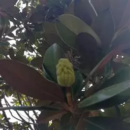 荷花木兰,木兰科北美木兰属常绿灌木或乔木。叶子椭圆形或倒卵形,前端尖,叶面深绿色,边缘没有锯齿,…