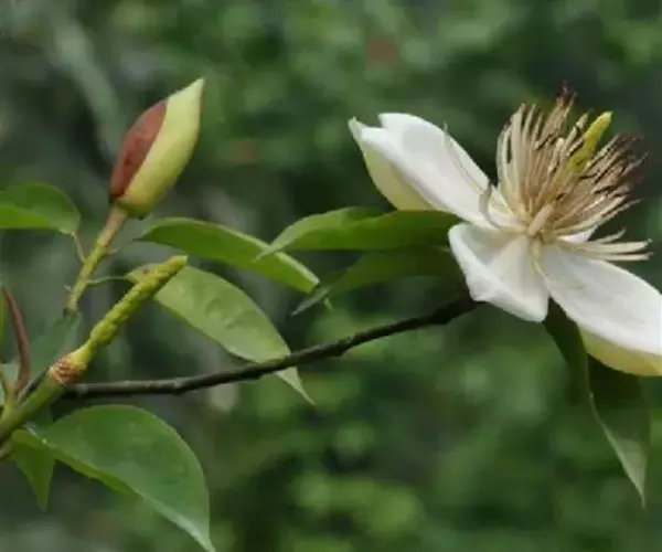 深山含笑是木兰科含笑属常绿大乔木。株高达20米;芽、幼枝、叶下面、苞片均被白粉;叶为革质宽椭圆形,…