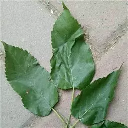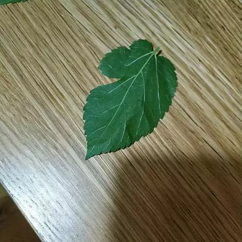 乔木,高约10米;树皮暗褐色;小枝被淡褐色柔毛。叶广卵形至近心形,长6-12厘米,有可达20厘米,宽7-11厘米,质厚,先端尖或短渐尖,基部心形,边缘具粗而相等的锯齿,通常不分裂,表面深绿色,粗糙,背面淡绿色,被短柔毛和绒毛;托叶膜质,披针形,被褐色柔毛。