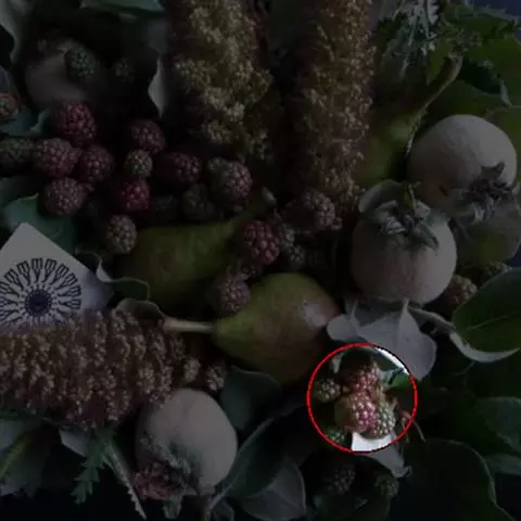 聚花果短椭圆形,成熟时紫黑色,长2-2.5厘米,直径1.5-2.5厘米,总花梗短,无明显花柱,柱头2裂,被柔毛。花期4月,果期4-5月。