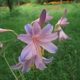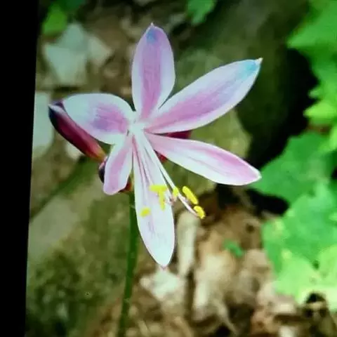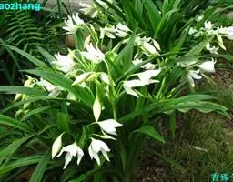 长筒石蒜草本,地生。鳞茎卵球形;叶披针形;伞形花序,有花5-7朵,花白色;花被裂片腹面稍有淡红色条纹,…
