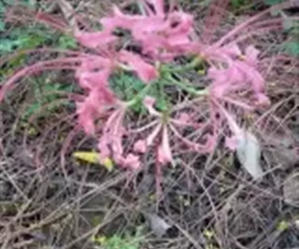 稻草石蒜草本,地生。鳞茎近球形;叶带状;伞形花序,有花5-7朵,花稻草色;花被裂片腹面散生少数粉红…