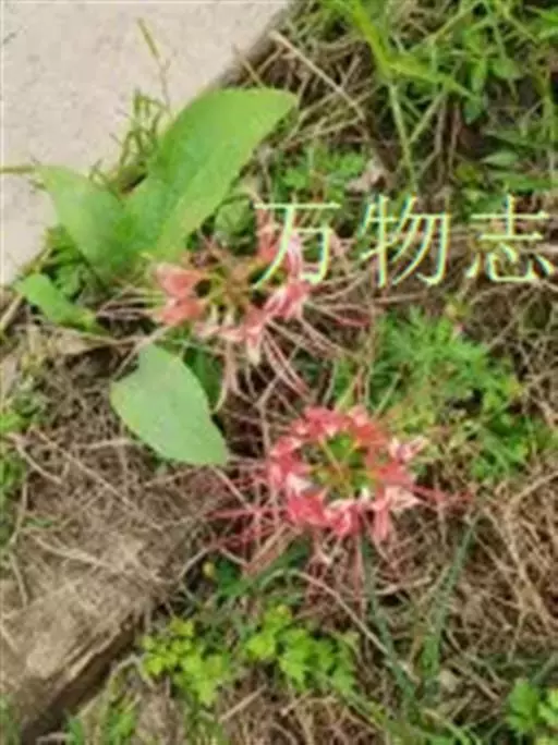 石蒜 Herb.):鳞茎近球形。秋季出叶,叶狭带状,顶端钝,深绿色,中间有粉绿色带;花茎高约30厘…