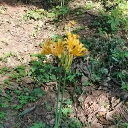 中国石蒜草本,地生。植株无毛,叶带状,顶端圆;伞形花序,花黄色;花被裂片背面具淡黄色中肋,倒披针形…