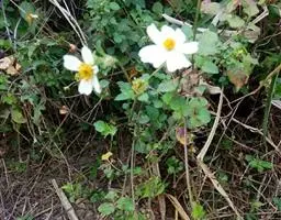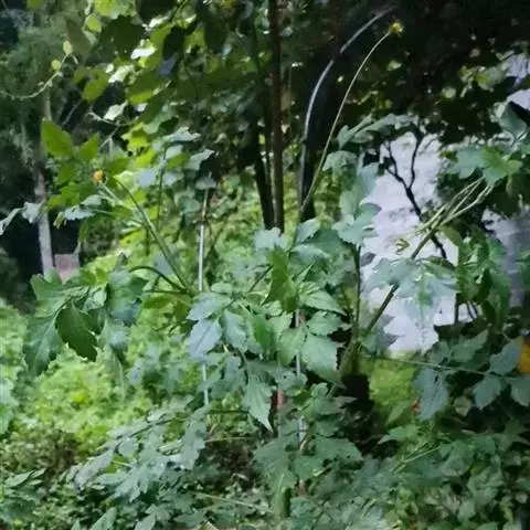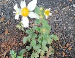 白花鬼针草 一年生直立草本,高30-100cm。茎钝四棱形,无毛或上部被极稀的柔毛。茎下部叶较小,3裂或不分裂,通常在开花前枯萎;中部叶具长1.5-5cm无翅的柄,三出;小叶常为3格,很少为具5(-7)小叶的羽状复叶,两侧小叶椭圆形或卵状椭圆形,长2-4.5cm,宽1.5-2.5cm,先端锐尖,基部近圆形或阔楔形,有时偏斜,不对称,边缘有锯齿,顶生小叶较磊,长椭圆形或卵状长圆形,长3.5-7cm,先端渐尖,基部渐狭或近圆形,具长1-2cm的柄,边缘锯齿,上部叶小,3裂或不分裂,条状披针形。