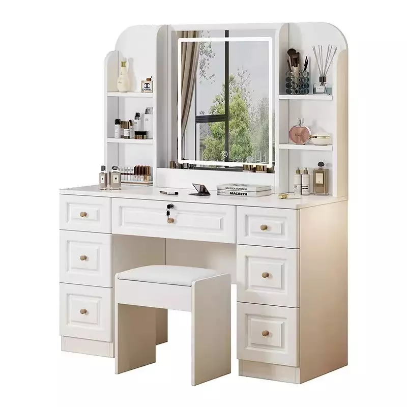 梳妆台的镜子在挑选的时候不能只随便看看觉得可以就好了,梳妆台的镜子一定要是折面设计,这样你在照镜子的时候,可以看到自己脸的各个角度,清晰的看到自己哪个地方的妆容有问题。