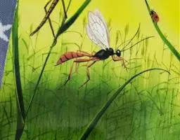 另有一种叫沟姬蜂的类群,本领更大。它们不但善飞,而且还会在水中潜泳。于是它们在水中找到了要寄生的水生昆虫的幼虫,把卵产在它们的身上。为了后代能在水中呼吸,还拖出一条里面有空气、能在水中飘动的细丝,从而给后代准备了一个“氧气瓶”。有人做个实验,把这条长长的丝带剪断了,结果发现姬蜂幼虫也因窒息而死亡。可见这条丝带是多么重要。再有一种叫趋背姬蜂的,它们的幼虫必须寄生在大树蜂幼虫的体上才能生长发育。当它们产卵时,要首先找到大树蜂的幼虫。