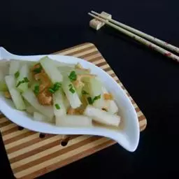 3)用2汤匙水将花生酱稀释,放入盐,鸡精,香油搅拌均匀。