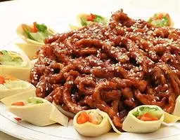 4)将菠菜段和炸熟的花生仁放入盘中,淋上酱汁即可。