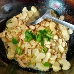 2)炒锅入油,以小火烧至五成热,放入花生仁炸至八成熟,关火后利用余温将花生煨至全熟后捞出冷却。