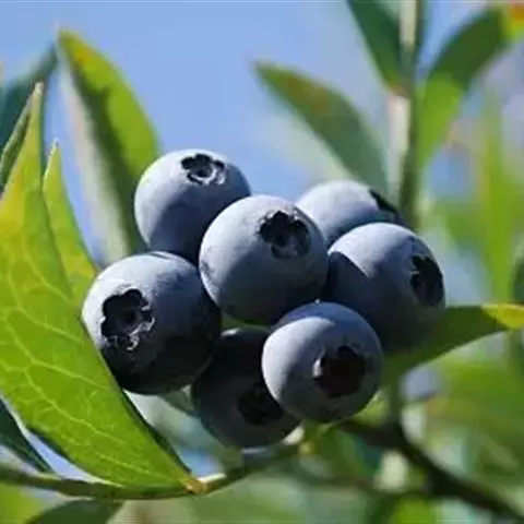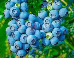 蓝莓是杜鹃花科、越橘属的落叶灌木,小枝绿色,具棱或圆柱形,通常具成行的柔毛;叶片近革质,卵形至椭圆形,…