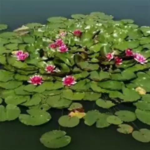 红花睡莲,多年生浮水植物。叶浮于水面,卵形,革质,表面绿色,背面紫红色,幼叶红色,花昼开夜合,浮于…