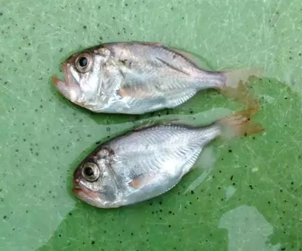 孵仔鱼全长为2.38毫米,油球位于卵黄囊的后端稍下方,胚体上具4从明显黄色素,分布在吻端、眼后、胸鳍后方及尾部中央,肌节12-19对。体长5.9毫米稚鱼,腹部、尾部具2-3个黑色素,其中臀鳍后黑色丛在离臀鳍后基1-2肌节处;体长8.3毫米稚鱼,体侧黑色素位于背鳍第四至第五棘基底和体侧正中线中间位置;体长15毫米稚鱼,体侧黑色素分散呈斑纹状;体长25.5毫米稚鱼,全身黑色素增加,黑色素丛之间界线不清,鳃盖下色素呈黑色。