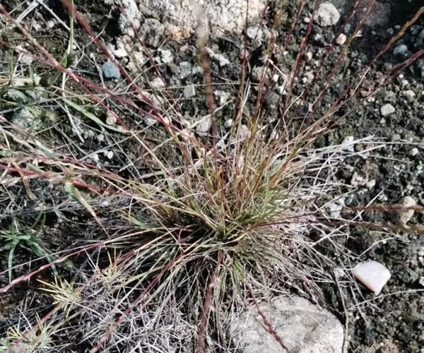 多年 生密丛草本,须根纤细而稠密。秆直立,高10-30厘米,细弱,光滑无毛;叶鞘通 常仅于鞘口处有白色长柔毛;叶舌膜质,长约0.5毫米,具纤毛;叶片狭线形,常内卷成刺毛状,上面微粗糙且向基部疏生柔毛,下面平滑无毛,长5-15厘米,宽约1毫米。穗状花序细弱,长8-11(15)厘米,穗轴三稜形,微扭曲,多平滑无毛,宽约0.5毫米;小穗线状披针形,铅绿色,长5-8(10)毫米,含3-5小花;颖具宽而透明的膜质边缘,第一颖长1.5-2毫米,第二颖长2.5-3.5毫米;外稃质薄似膜质,先端2裂,具3脉,主脉延伸成短且直的芒,芒长1-2毫米,侧脉可延伸成长约0.2-0.5毫米的芒状小尖头,第一外稃长3-4毫米,基盘被长约1毫米的柔毛;内稃膜质,等长或稍短于外稃,脊上粗糙,具微小纤毛;花药长1-1.5毫米。花果期7-9月。