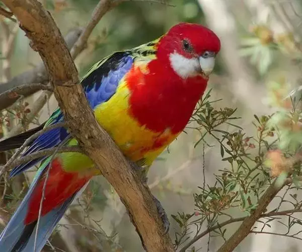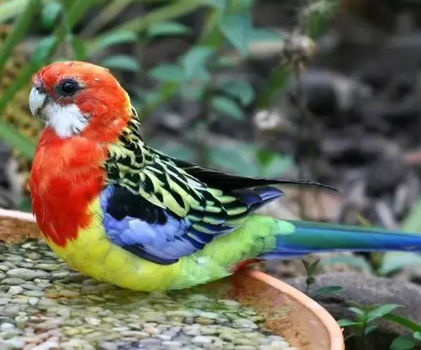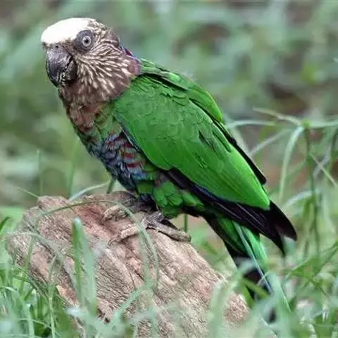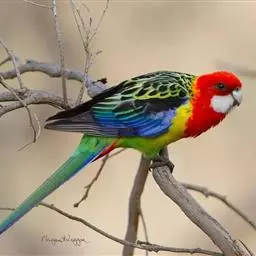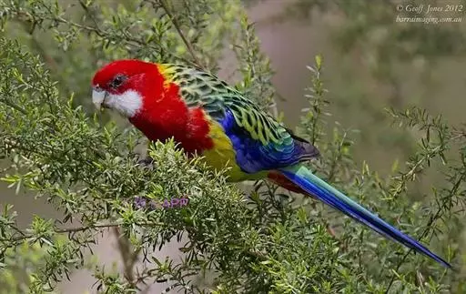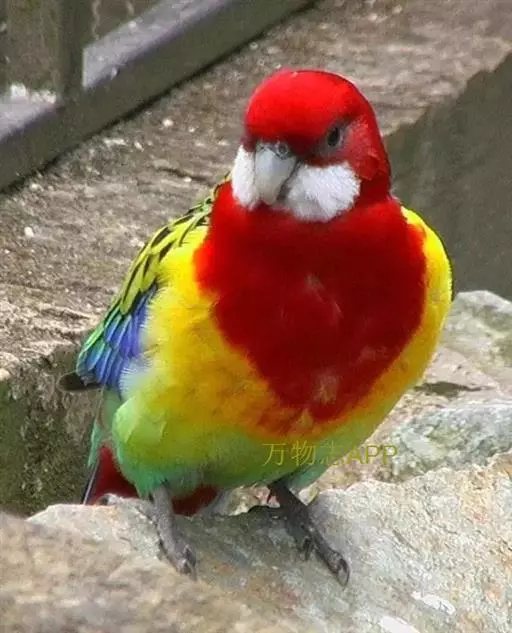 体形特征 30CM~33CM。身上的羽色十分鲜艳,母鸟头部与胸前的红羽比公鸟的羽色暗,面颊白色的部分呈淡灰色,头顶则有一点绿色,而公鸟的红羽为鲜红色,面颊纯白色,头顶红色无绿色参杂,野外数量稳定,全世界约共超过50万只,有3种亚种 ,也是发展出最多变种的玫瑰鹦鹉。青绿的羽色上长有鲜亮的羽毛,背上具鳞片状墨斑。
