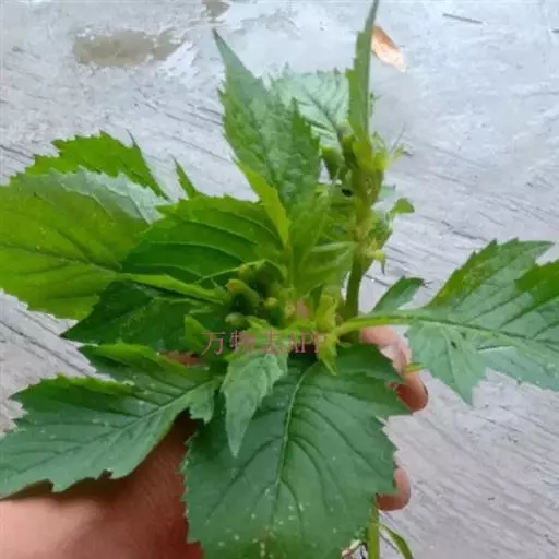 无毛叶膜质,椭圆形或长圆状椭圆形,长7-12厘米,宽4-5厘米,顶端渐尖,基部楔形,边缘有不规则锯齿或重锯齿,或有时基部羽状裂,两面无或近无毛;叶柄长2-2.5厘米。