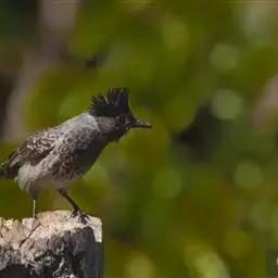 常见于高可至海拔1200米的低地丘陵、沟谷阔叶林、常绿阔叶林或坝边林缘。喜林缘及次生林枝叶稠密的较高树木。叫声是欢悦吵嚷的轻快哨音hee-tee-hee-tee-weet,最后音节为下降声。甚羞怯,偶尔追捕空中昆虫,但通常积极觅食果实。兴奋时羽冠耸起。分布于斯里兰卡。