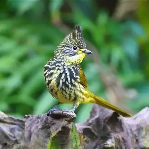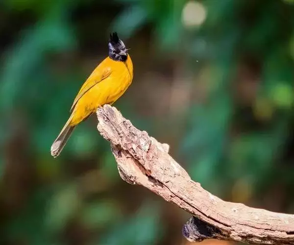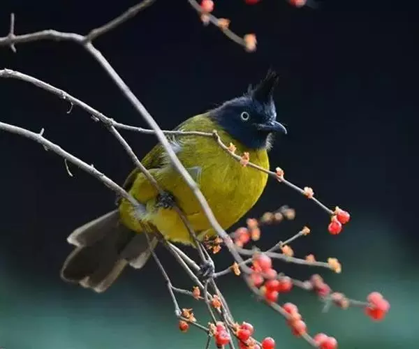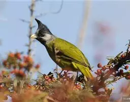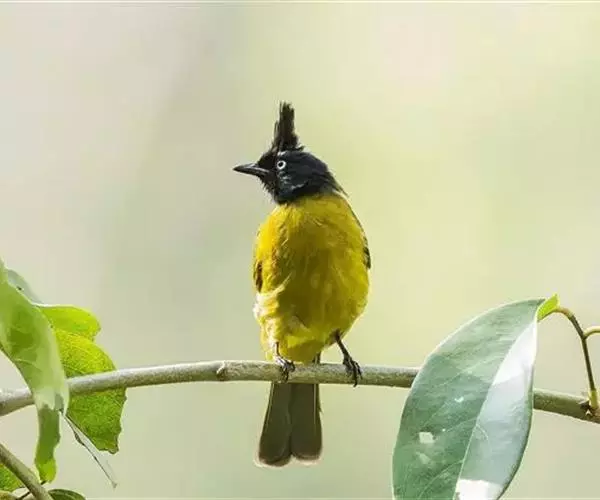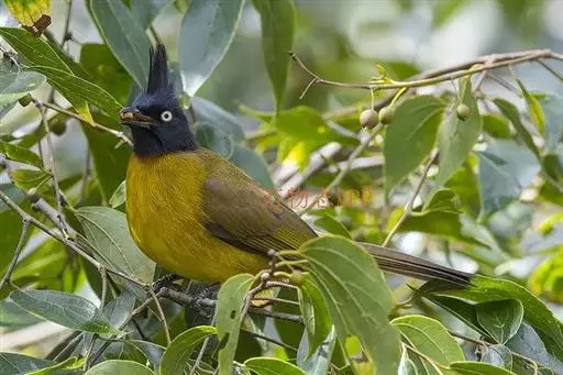 黑冠黄鹎:体长18-21厘米,是一种中等体型偏黄色鹎。整个头、颈、颏、喉黑色,头顶有显著直立的羽冠,…