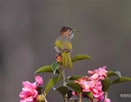 黄绿鹎,小型鸟类,体长19-22厘米。额至头顶暗褐具灰色羽缘,眼先黑色,…