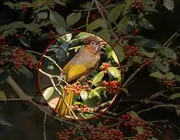 纹喉鹎:体长19厘米,是一种中等体型的偏绿色鹎。特征为头顶、脸颊、颏及喉均具黄色条纹。上体橄榄绿色。…