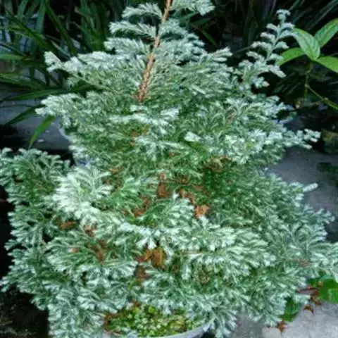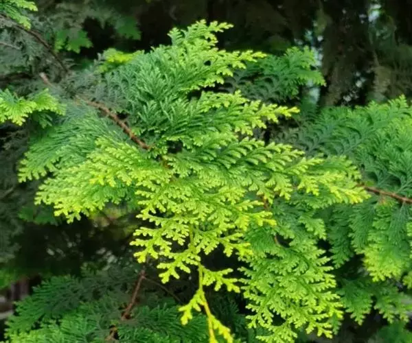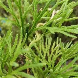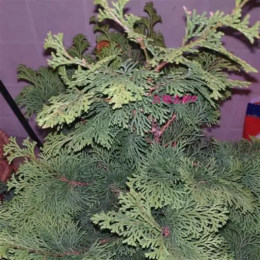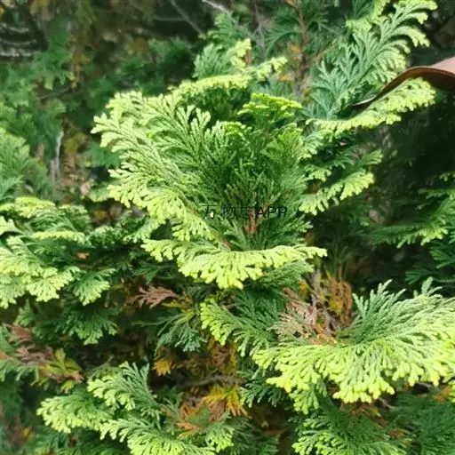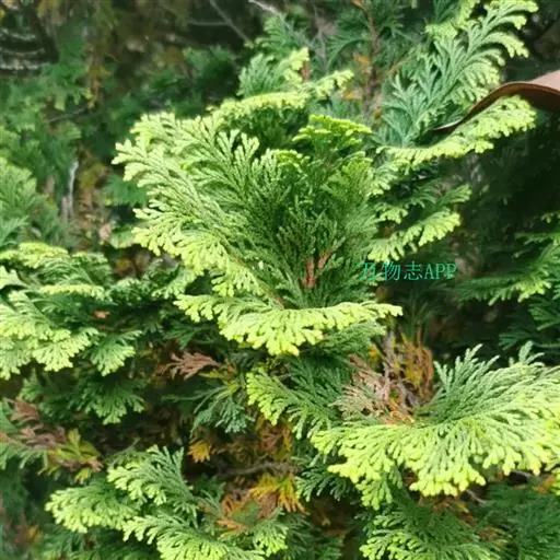 凤尾柏(Chamaecyparis obtusa (Sieb. et Zucc.) Endl.'Filicoides' Dallimore et Jackson)(通用名)灌木,枝条短,末端鳞叶分枝短,扁平,在主枝上排列密集,外观象凤尾蕨状;鳞叶钝,常有腺点。中国庐山、南京、杭州等地栽培供观赏。生长较慢。