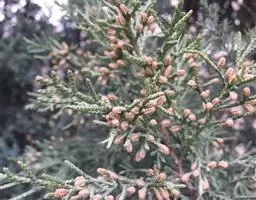 常绿乔木,原产地高40m,胸径1.5m;树冠尖塔形。树皮红褐色,裂成薄片。生鳞叶的小枝背面有白线或微被白粉。鳞叶先端钝,肥厚。球果径0.8-1cm,红褐无能;种鳞4对,顶部五边形或四方形,平或中央微凹,中间有小尖头。种子近圆形,翅窄。花期4月;球果10-11月成熟。