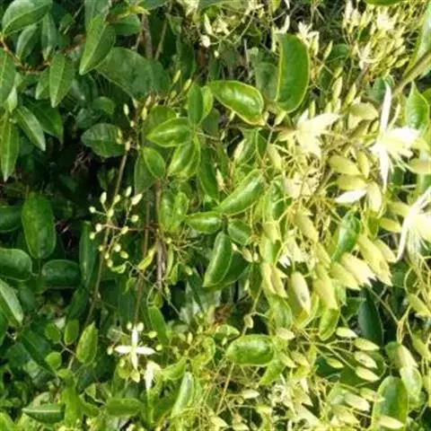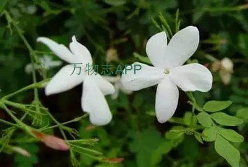 攀援灌木,高1-4米。小枝圆柱形,具棱或沟。叶对生,羽状深裂或具5-9小叶, 素馨花 叶长3-8厘米,宽3-6厘米;叶轴常具窄翼,叶柄长0.5-4厘米;小叶片卵形或长卵形,顶生小叶片常为窄菱形,长0.7-3.8厘米,宽0.5-1.5厘米,先端急尖、渐尖、钝或圆,有时具短尖头、基部楔形、钝或圆。