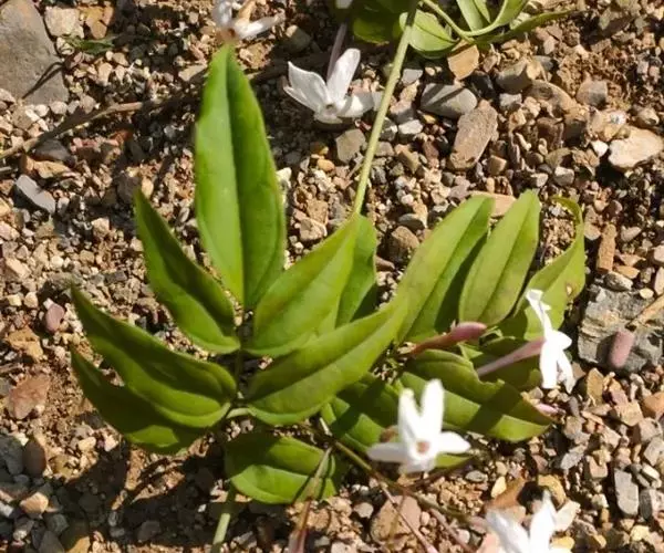 聚伞花序顶生或腋生,有花2-9朵;花序梗长0-3厘米;苞片线形,长2-3毫米;花梗长0.5-2.5厘米,花序中间之花的梗明显短于周围之花的梗;花芳香;花萼无毛,裂片锥状线形,长(3-)5-10毫米;花冠白色,高脚碟状,花冠管长1.3-2.5厘米,裂片多为5枚,长圆形,长1.3-2.2厘米,宽0.8-1.4厘米。果未见。花期8-10月。