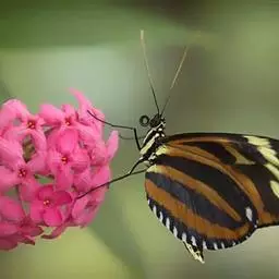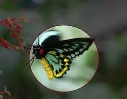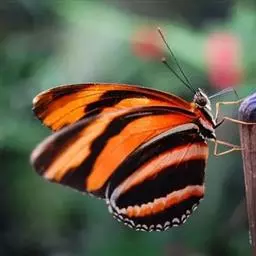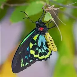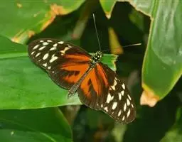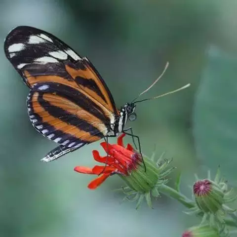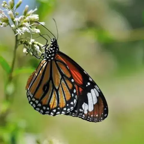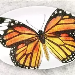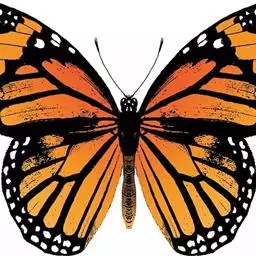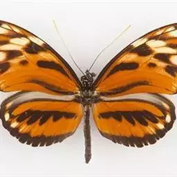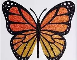 黑脉金斑蝶:翅阔8.6-12.4厘米。雄蝶较雌蝶为大。成年蝶颜色鲜艳,翅膀上有显眼的橙色及黑色斑纹…