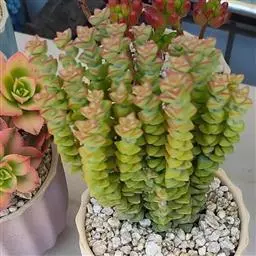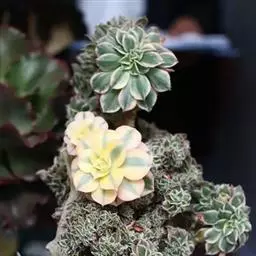 戴冠曲 景天科莲花掌属多肉植物,为亚灌木分枝多,叶片生长在茎端和分枝顶端集和成莲座叶盘,叶片倒卵…