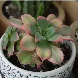 红缘莲花掌属蔷薇目、景天科植物,原产大西洋的加那利群岛。质厚,蓝绿色,被白霜,叶缘红褐色。聚伞花序,…
