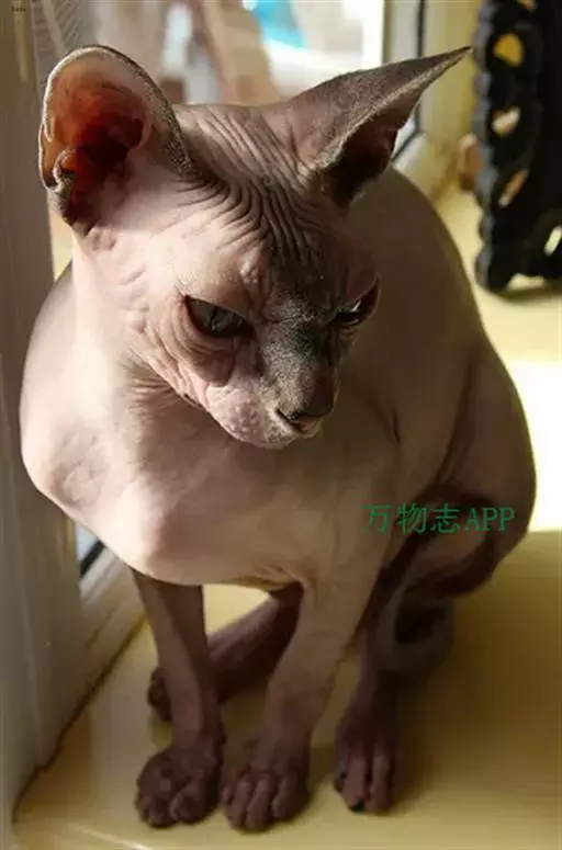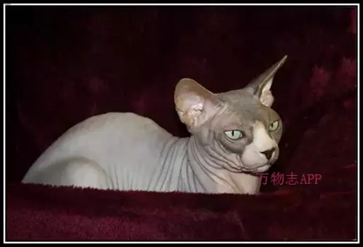 加拿大无毛猫 斯芬克斯猫又名斯芬克斯无毛猫。早在1700年前就有南美墨西哥土著居民饲养过这种无毛猫的记载。但直到该品种在猫展中获得成功人们才开始注意它,并对它产生兴趣。TlCA承认该品种,此种猫在2005年被认定为稀有品种。