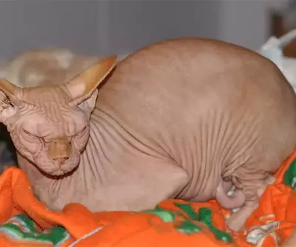 加拿大无毛猫(Canadian Hairless)亦称斯芬克斯猫,是加拿大安大略省多伦多市养猫爱好者在1966年从一窝几乎是无毛的猫仔中,经过近交选育,特意为对猫毛过敏的爱猫者培育成的。这种猫是自然的基因突变产生的宠物猫,除了在耳、口、鼻、尾前锻、脚等部位有些又薄又软的胎毛外,其它全身部分均无毛,皮肤多皱有弹性。加拿大无毛猫性情温顺,独立性强,无攻击性,能与其它猫狗相处。