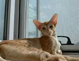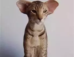 体重一般达到3.5到7公斤,肌肉发达,胸深,背较驼,腹紧凑而不上收。四肢细长,骨骼纤细,后肢比前肢长。头部棱角分明,宽大而呈楔形,颧骨突出,两颊瘦削,脸呈正三角形,耳廓硕大、直立,高耸于头顶,耳端尖圆,微前倾;眼睛大而微突呈柠檬状,稍倾斜,多为蓝色和金黄色;上眼角斜向耳,间距较宽。 尾巴如老鼠般又细又长,像长鞭一样弯曲上翘。