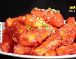 6、冷却、加糖:把白瓷盘放到阴凉处凝冻10小时,待制品呈凝固状,用小刀切成块状。在块状物上面均匀撒上1层白砂糖,然后送入烘箱内。