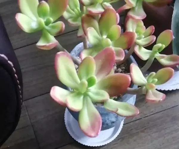 三色花月锦是景天科青锁龙属多肉植物,燕子掌的栽培品种,叶片有红、黄、白斑块,色彩斑斓。花期秋季。
