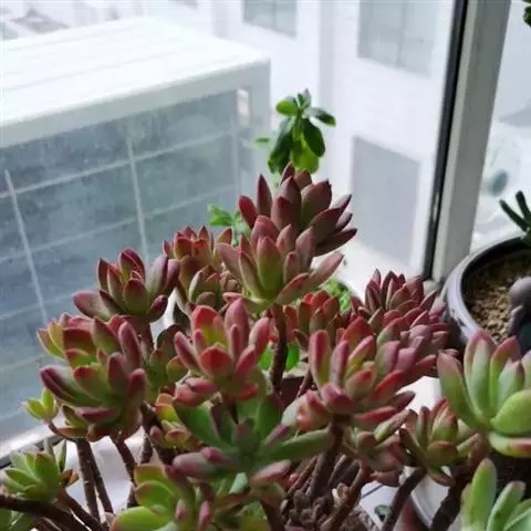 喜温暖干燥和阳光充足的环境,怕低温和霜雪,耐半阴,无明显休眠期。易泛滥。 非常抢眼的一种多肉植物,正常为绿色,日照时间增加及大温差会整株变为红色,并能开出很长花径的白色小花,较喜欢日照,对水分需求较多。夏季要适当遮荫,避免灼伤。 冬天绽放可爱的白色花朵,夏季不太引人注目。收到的亲朋友们尽可能的为她保持光照充足的环境,浇水后如果没有明亮光线照射,叶片将有可能逐渐变成绿色,即会少了那可爱的一抹红。