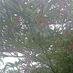 核果椭圆形,长3-3.5厘米,有褐色茸毛。花期8-9月,果实在冬季成熟。