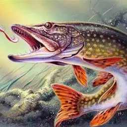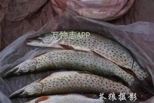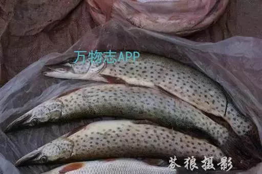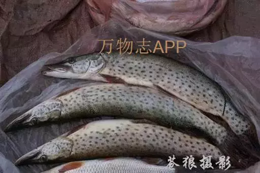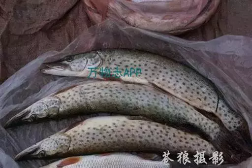 黑斑狗鱼 狗鱼是大型食用鱼,其肉厚刺少,肉质细嫩,新鲜狗鱼可做生鱼片,也可熏制,味道均佳。资源量已有很大衰减。
